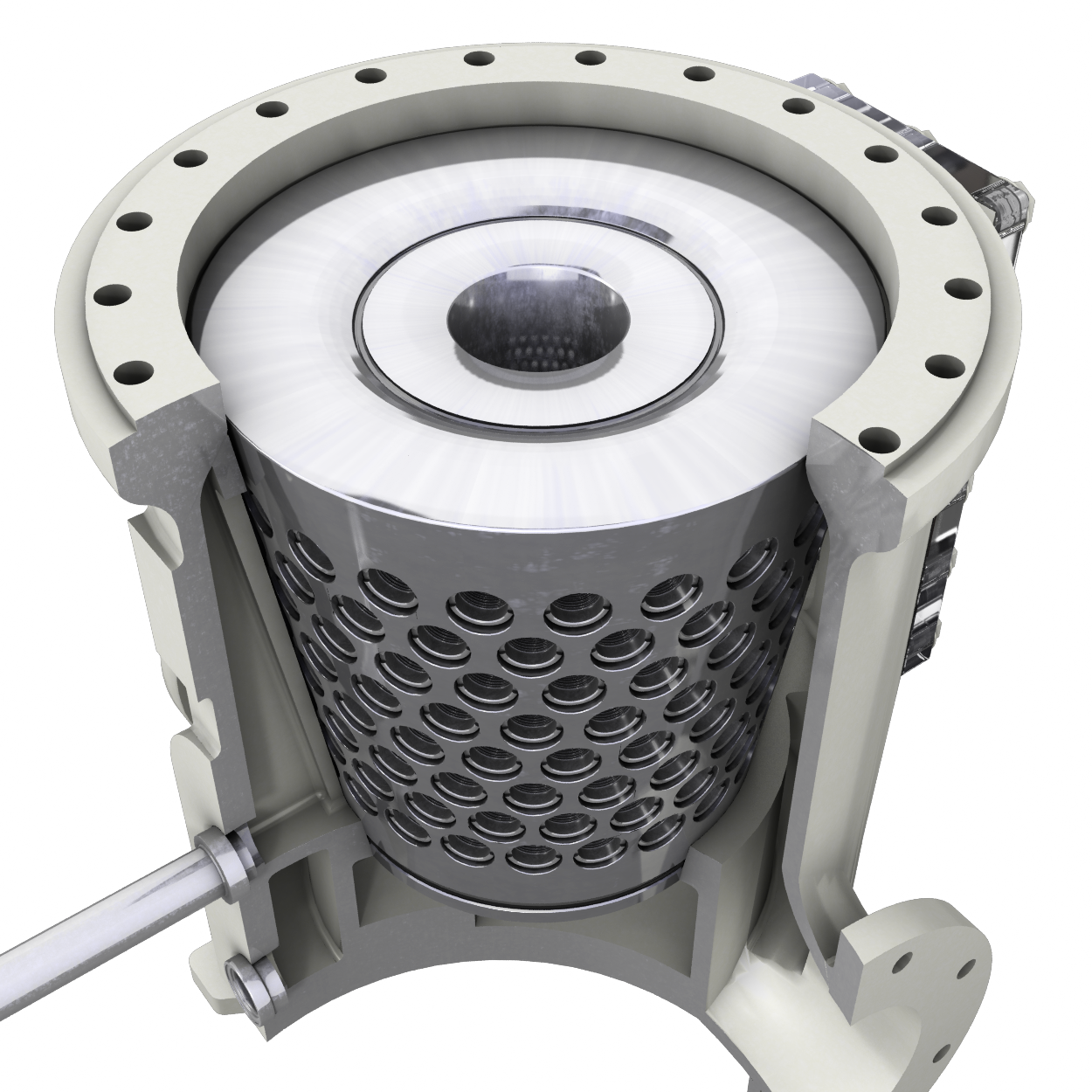 The Kinney Model “A” strainer eliminates troublesome disassembly by providing an opening in the side of the strainer body. To inspect the straining media, simply remove the cover and manually rotate the drum. As each row of media passes the inspection opening, easy access to the media is achieved.